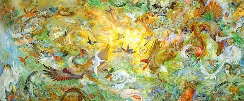 Μόνο φαινομενικά διαφορετικός είναι ο δρόμος που επέλεξε ο 58χρονος ζωγράφος και κοινωνιολόγος Farrokhzad. Οι ακουαρέλες του παραπέμπουν τώρα ρητά στον αρχαιότερο περσικό πολιτισμό, παίρνοντας σημάδια και σύμβολα χαρακτηριστικά της προϊσλαμικής εποχής, ιδιαίτερα των Αχαιμενιδών: το λουλούδι με οκτώ πέταλα, η ουρά του λιονταριού, τα φτερά του αετού, το κέρατο του ταύρου, ο κύκλος ως ενοποιητικός παράγοντας. Τα διαφορετικά στοιχεία παρεμβάλλονται αρμονικά σε ομιχλώδη φόντο, σχεδόν ονειρικά σενάρια, δίπλα σε σχήματα που απεικονίζουν φτερωτές κατσίκες ή άλογα, για ένα παγκόσμιο αποτέλεσμα που ο Ευρωπαίος παρατηρητής θα έτεινε να ορίσει σουρεαλιστικό.